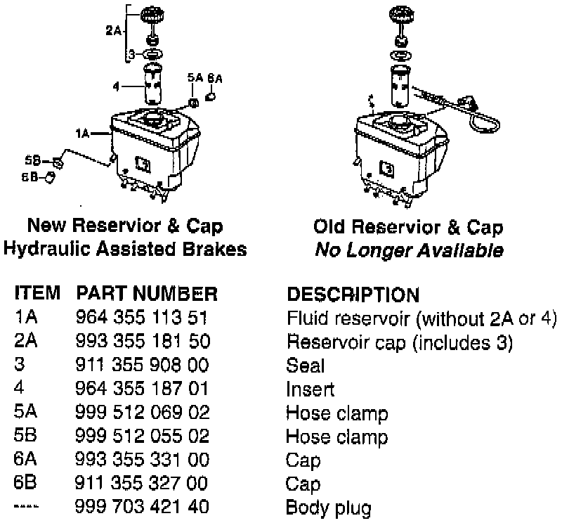 - Install the new reservoir (1), cap (6A) and secure with clamp (5A).