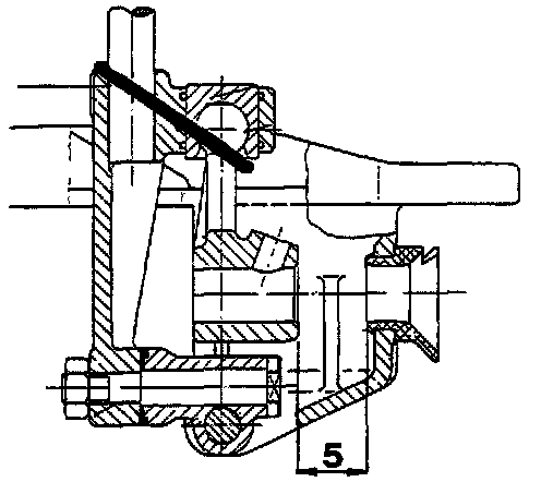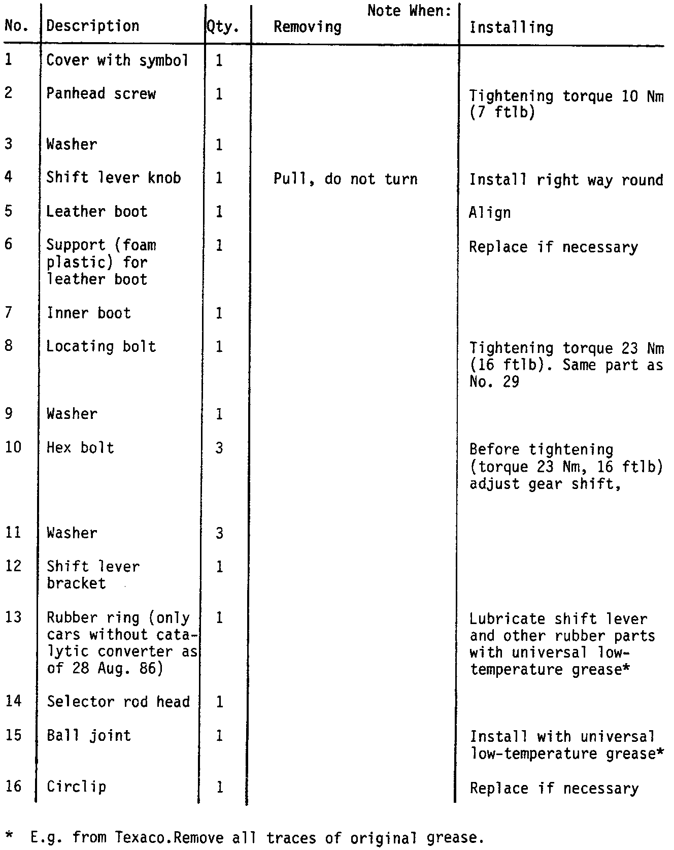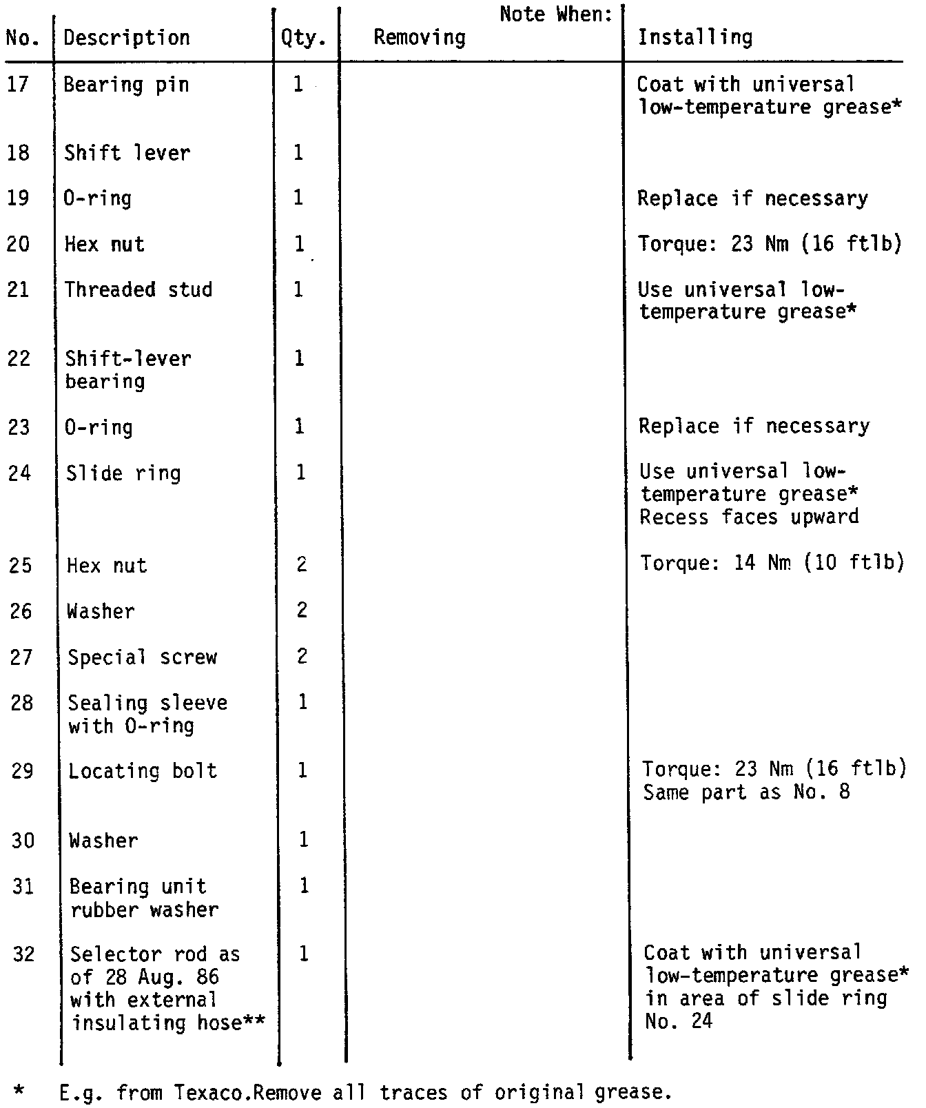 - Installation gap between slide ring (No. 24) in shift-lever bracket and selector rod head (No. 14) of shift lever 5 mm. If necessary, correct by moving shift lever bracket. When gap is correct (a 5 mm twist drill can be used to check gap) tighten shift lever bracket securing bolts. Torque: 23 Nm (16 ft lb).