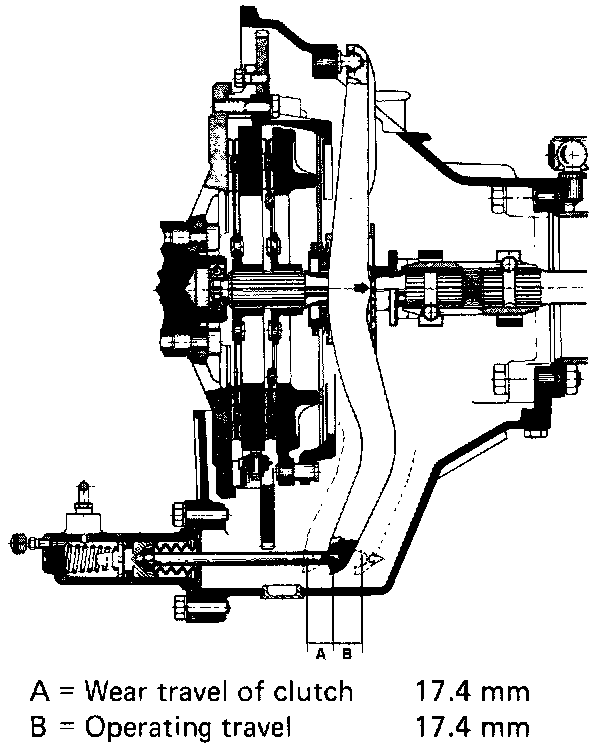The amount of clutch disc wear will not be indicated at the clutch pedal because of the automatic hydraulic clutch adjustment. Check for wear according to the following procedures.