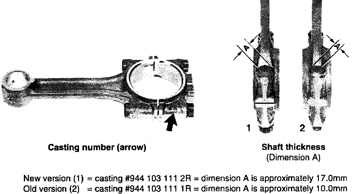 Effective immediately, only the new connecting rods are available as spare parts which can be installed in engines as of M.Y. 1992.