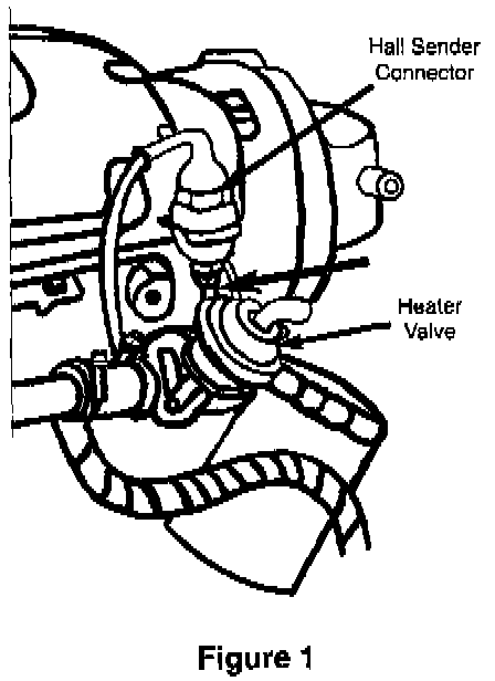 Inspect the heater valve and hall sender wiring (arrow in figure 1) for damage. Also inspect the heater valve vacuum module for damage. If necessary, replace affected components.