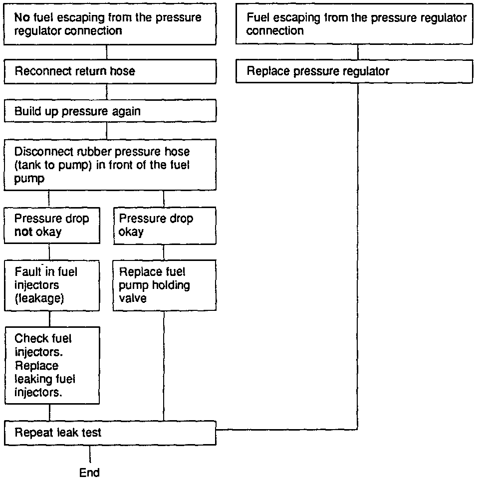 - Build up pressure again by switching on the fuel pump briefly. Remove return pipe from pressure regulator (fuel pump must not be switched on).