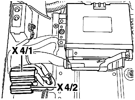X 4/1 and X 4/2 next to the Engine Control Module (EMC)