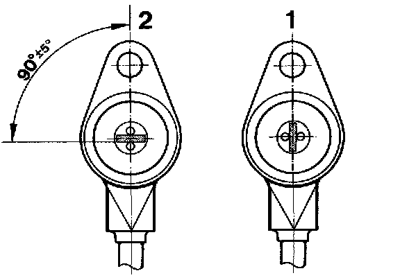 Identification on the speed sensor lead by means of added spare part No. and position of the fastening bore with respect to the edge position.
