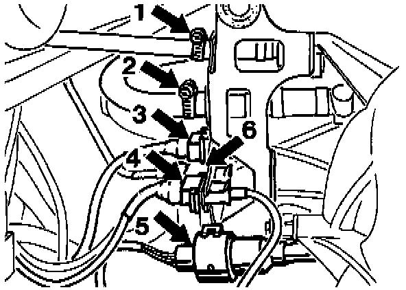 8. Drain reservoir of power steering pump (draw off fluid). Pull spark plug connectors off cyls. No. 4 and 5. Place suitable pan under hydraulic pump. Disconnect hoses and catch remaining oil in a pan. Always plug pump openings and hoses (to prevent dirt ingress).