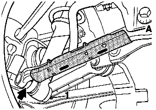 22a. Loosen fastening nut no. 1 (without removing it). Remove toe eccentric (A area). Rotate toe control arm 2 towards the out-side (detaching it from the cross member).