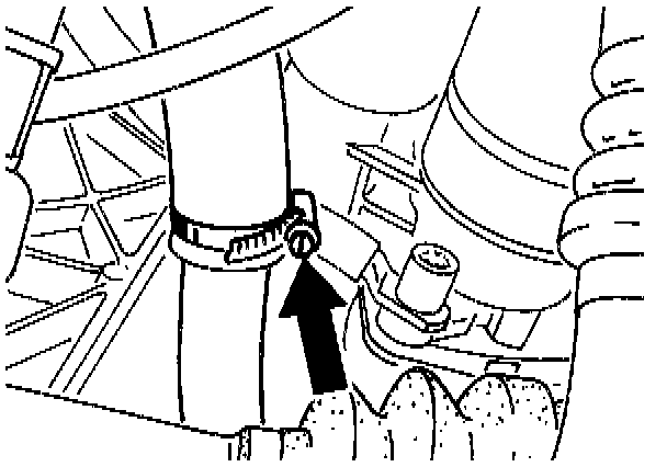 26. Release hose clamp and pull hose off the oil pipe. Catch remaining oil in a pan.