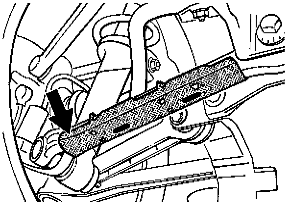 - Fit special tool 9549 on control arm 5 (measuring surfaces clean) so that the negative range of the scale (long side of the gauge) faces the transmission side.