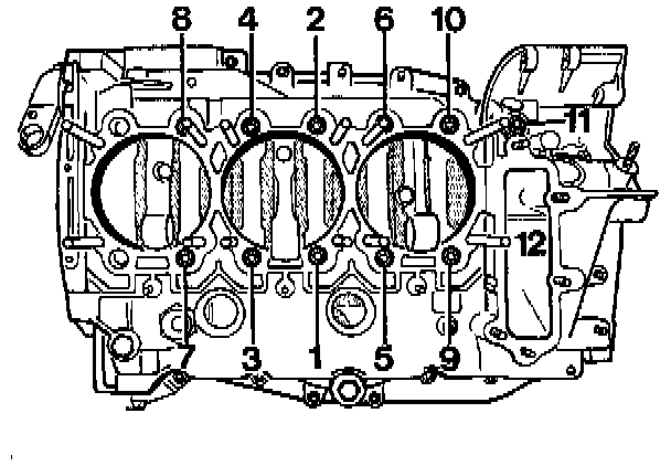 Tighten bolts and studs with 50 Nm (36.9 ft lb). Note specified tightening sequence shown in the illustration.
