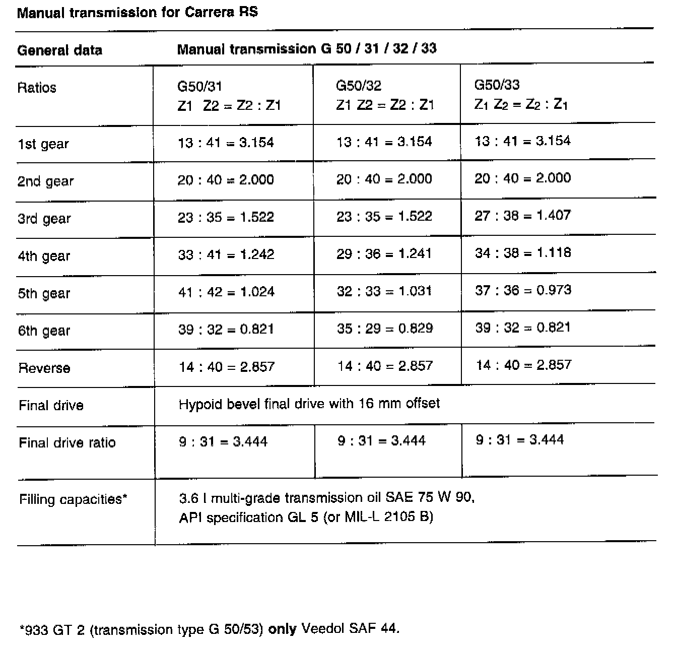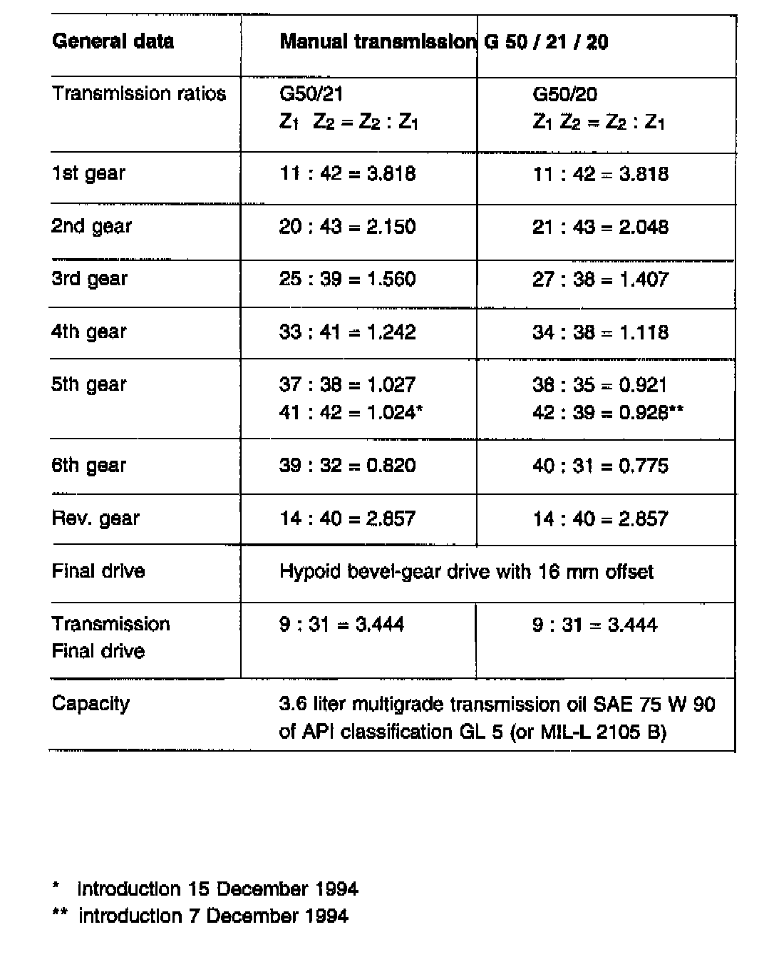 Manual Transaxle Gear Ratio Tables: