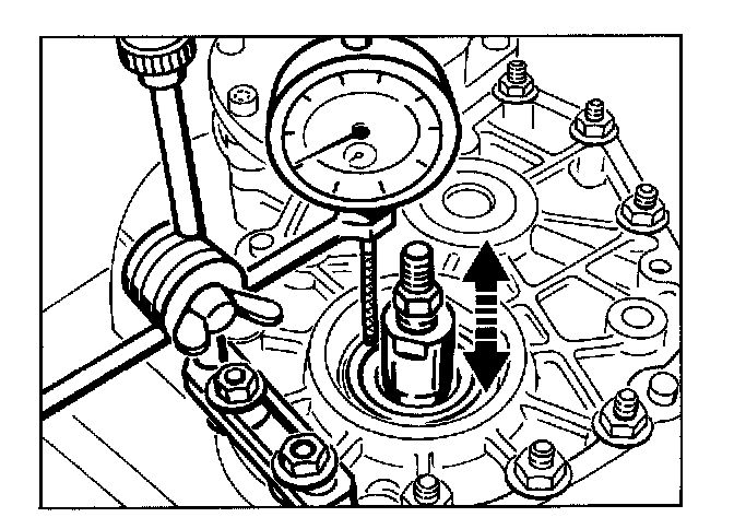 7. Move spur gear I up and down on internal puller and read off play on dial gauge (e.g. 1. 18 mm).