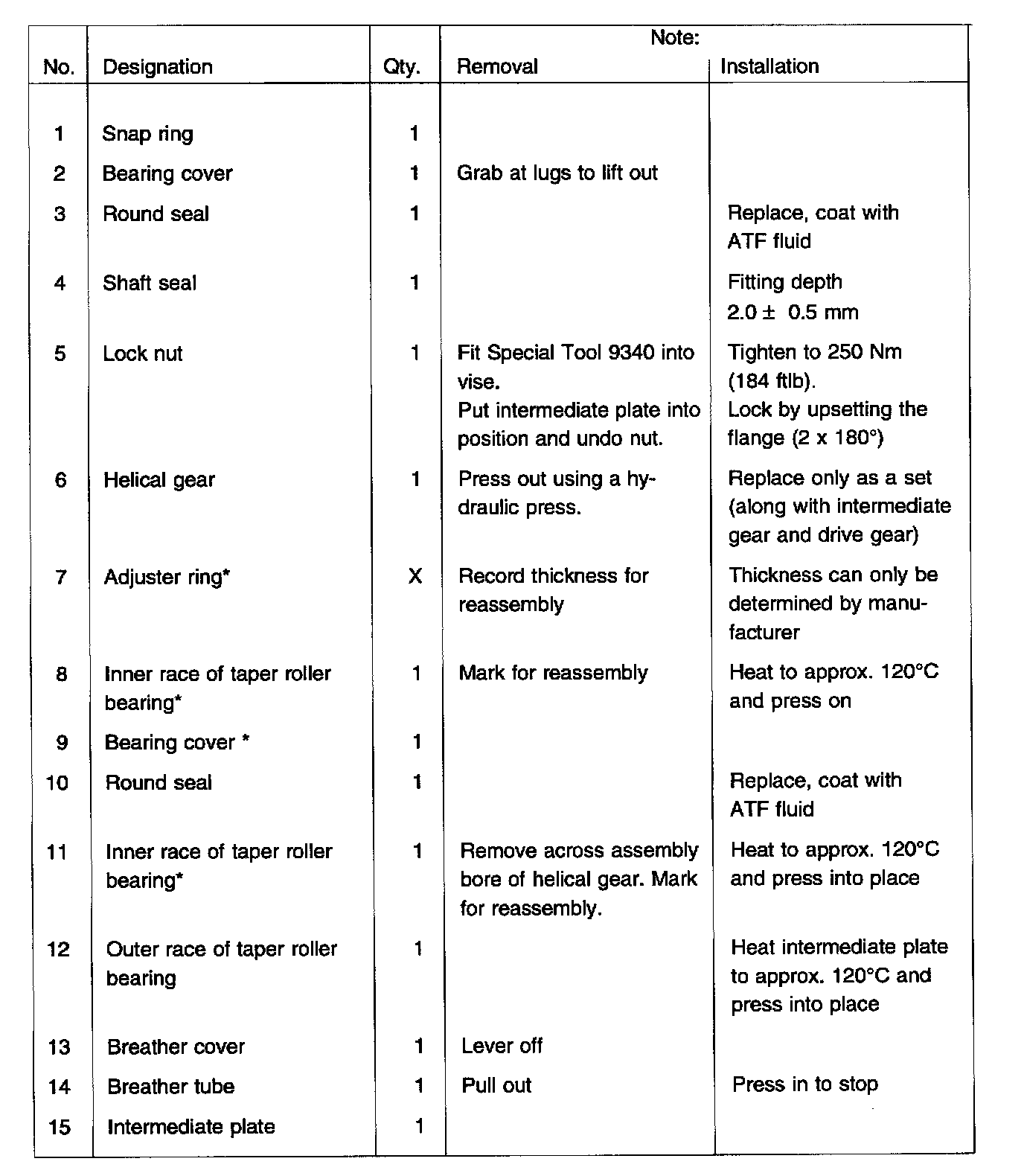 The parts identified by an * have been preadjusted by the manufacturer.