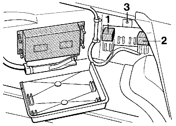 1. Pull off valve relay (R68INO.2). Release the relay holder (press out body-bound rivet No.3) to allow the relay cover to be removed. Check that connectors engage correctly in relay base (may have partially slipped down out of base). Check if voltage (approx. 12 volts) is present at relay base terminal 30 (system voltage). Check 60A fuse and wire from relay base to fuse if required.