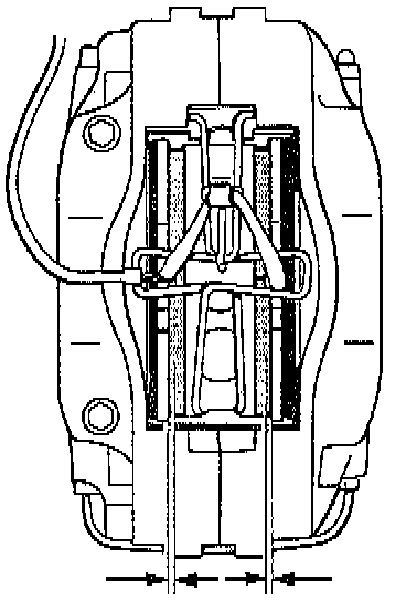 The brake pads must be replaced on both sides of one single axle as soon as the brake pad wear warning lamp lights up or, at the latest, when the pads have worn down to a thickness of 2 mm. If pad wear is indicated by the wear warning lamp, the warning contact (sensor complete with wire and connector) must be replaced. Replacement of the warning contact(s) can be avoided by replacing the brake pads at the latest when they are worn to a thickness of 2.5 mm. Warning contacts must be replaced if the wire core is exposed. Replacement is not necessary, however, if rubbing wear is limited to the plastic part of the warning contact only.