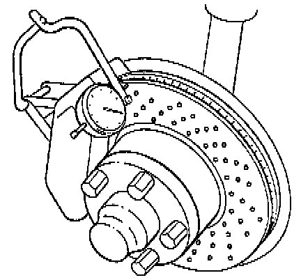 4. Fit dial gauge with a slight preload. Place measuring pointer on largest diameter of brake surface outside of perforation.