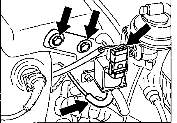 14. Detach ground strap between body and starter at lower starter mounting point.