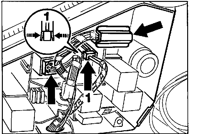 9. Pull vacuum line (arrow) for heater control off the connector strip.