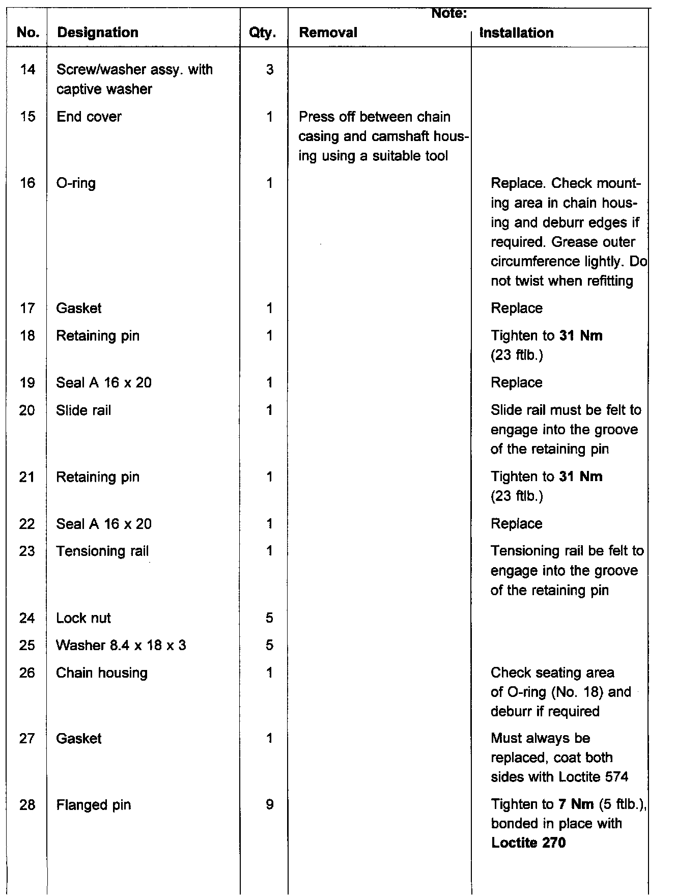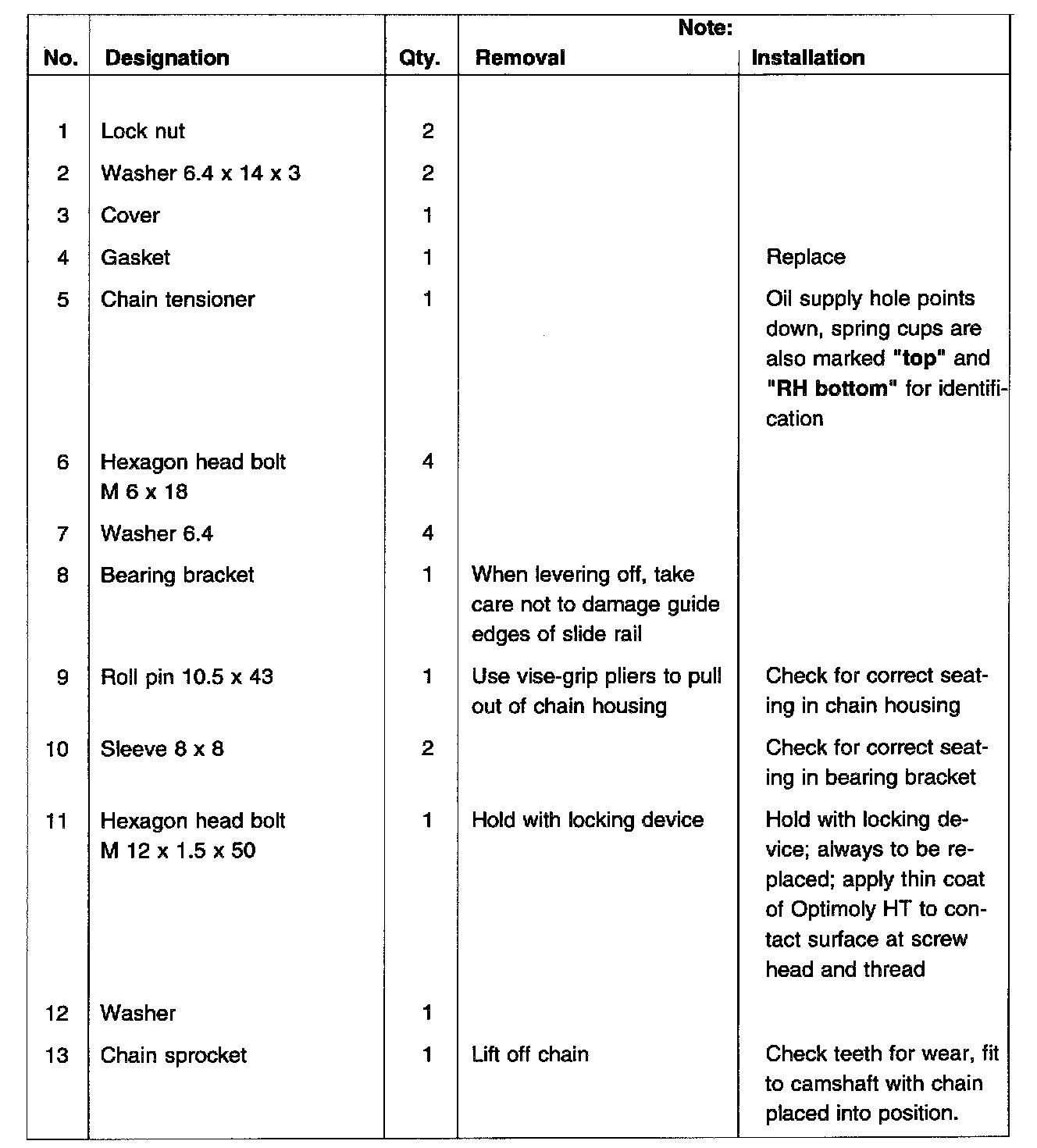 In combination with the use of 4-hole chain sprockets, the following parts are no longer installed on the camshaft drive: