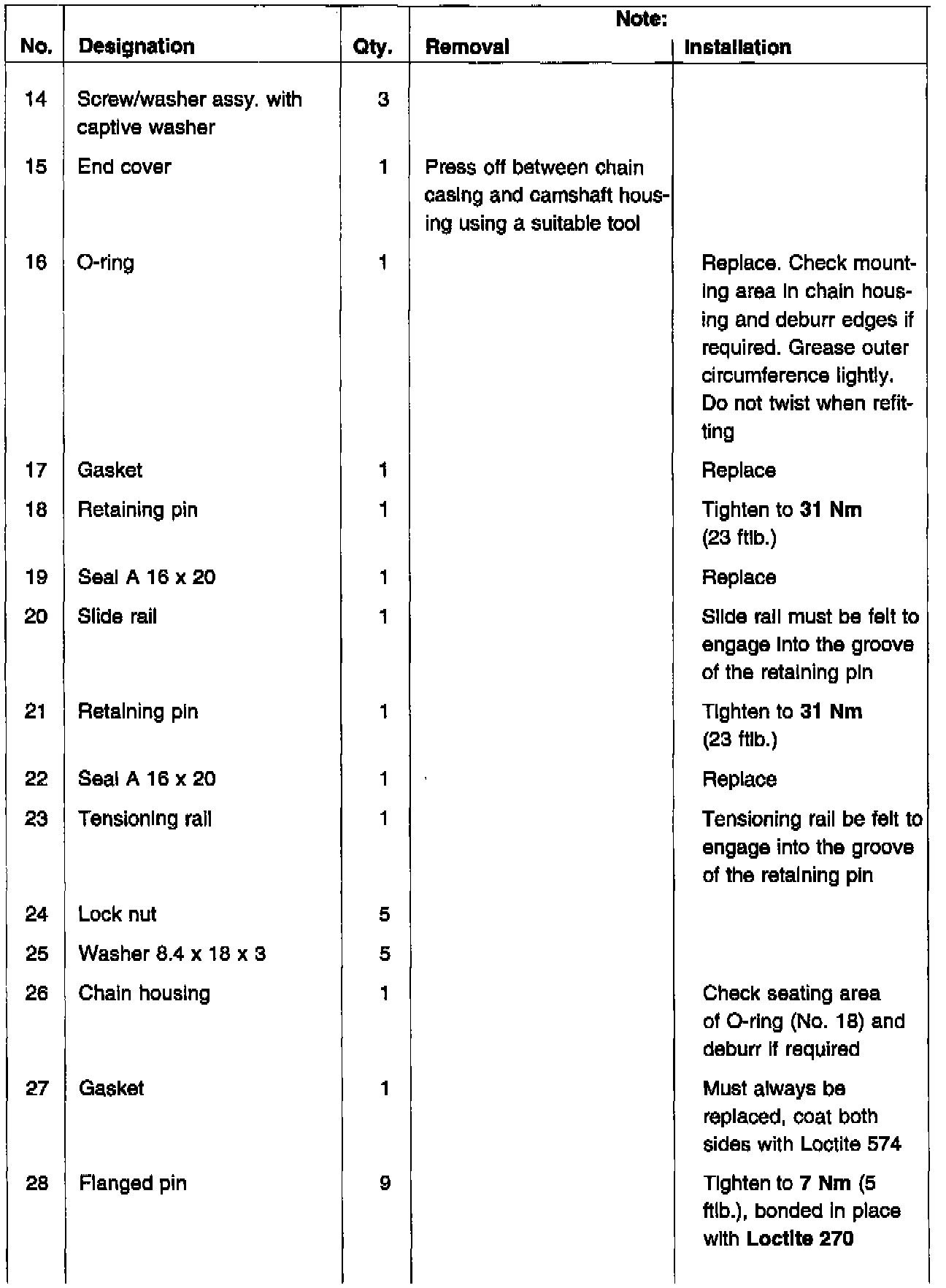 In combination with the use of 4-hole chain sprockets, the following parts are no longer installed on the camshaft drive.