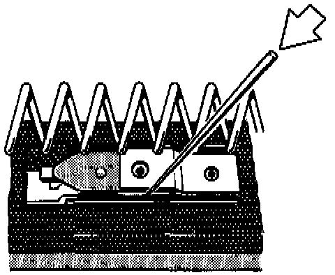2. Press down spring plate with a needle or a similar tool. This causes the contact tongue to snap back into its initial position.