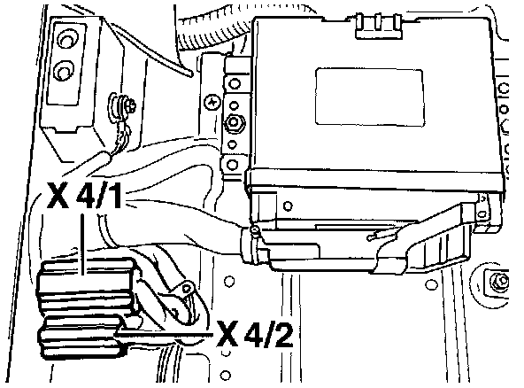 X4/1 and X4/2 next to the Engine Control Module (EMC)