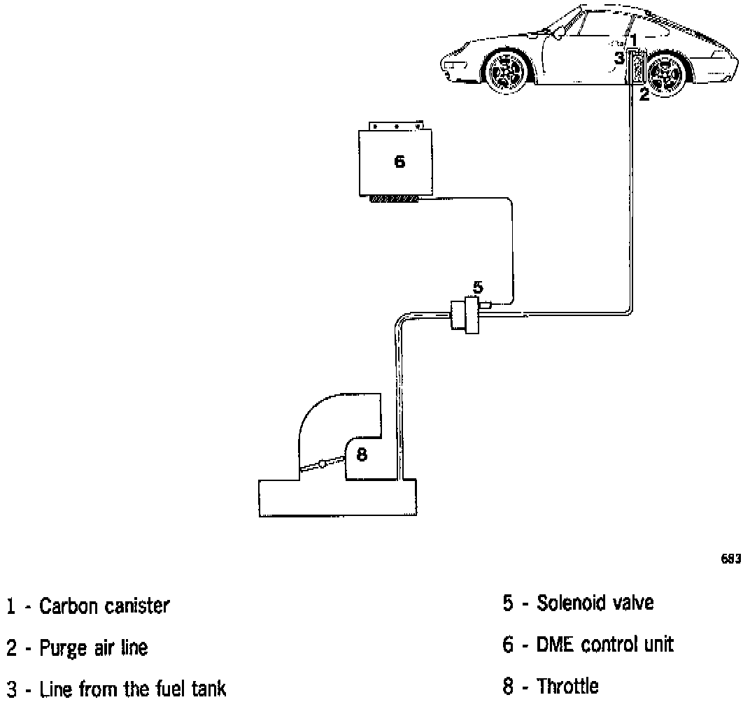The hydrocarbons created by vaporization of the fuel in the fuel tank are not released to the atmosphere across the tank vent but are instead collected in the carbon canister. This unit is installed in the rear left wheel housing.