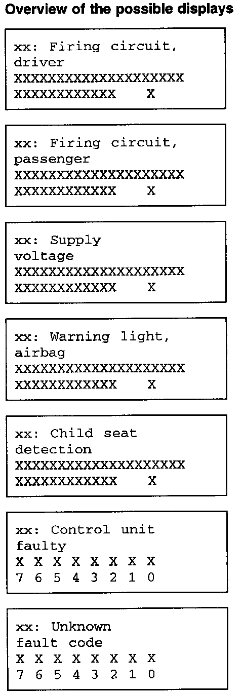 Overview of the possible displaysNOTE: A plus sign (+) present in the line or not present indicates a loose contact. A counter is started when the transition from present to not present occurs. The counter indicates how often the change took place from present to not present.