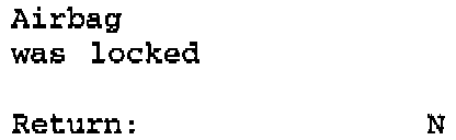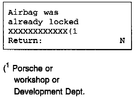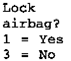 The "Lock" menu item allows a new, not-locked triggering unit to be locked. A locked triggering unit cannot be unlocked. The airbag warning lamp flashes if the triggering unit is not locked. The triggering unit must then be locked. The replacement triggering units are supplied not-locked.Press Key 1.