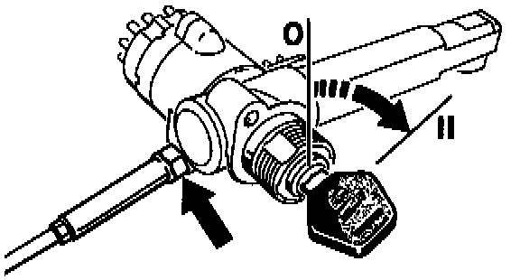 4. On key lock vehicles, screw in the cable in ignition steering lock position "II".