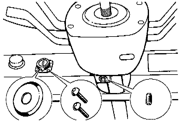 - Prick (center punch) the bolt off-center (on the steering wheel side) through the opening in the lower part of the dashboard for the steering line.