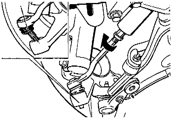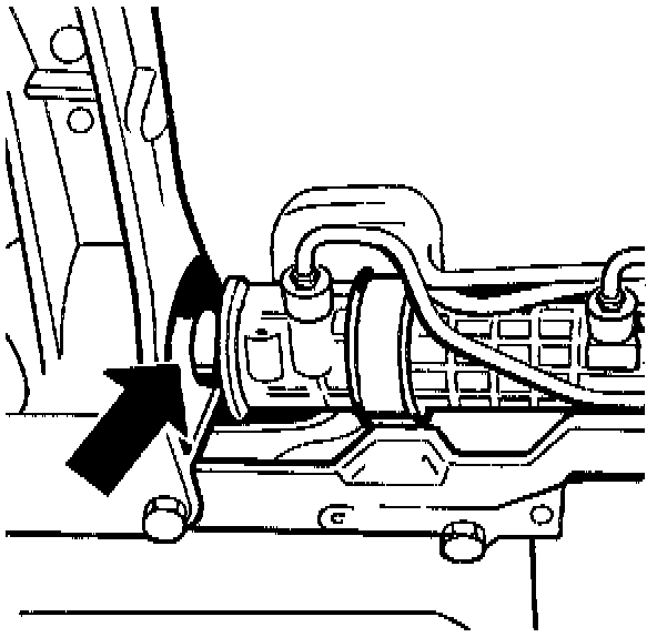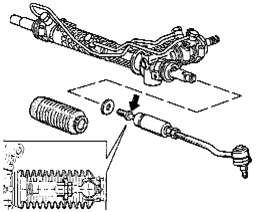 - Rack on right-hand side is fully retracted into steering gear housing (arrow).