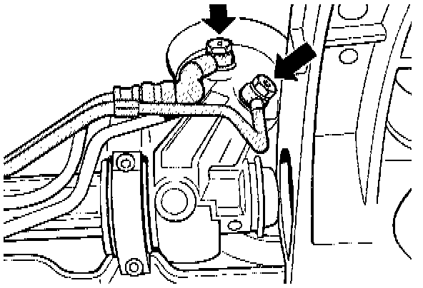 7. Unclip power steering pipes from bracket in right-hand steering gear mount area.