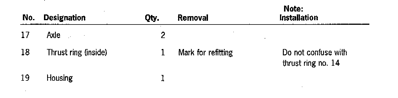 - Mark thrust rings for refitting.