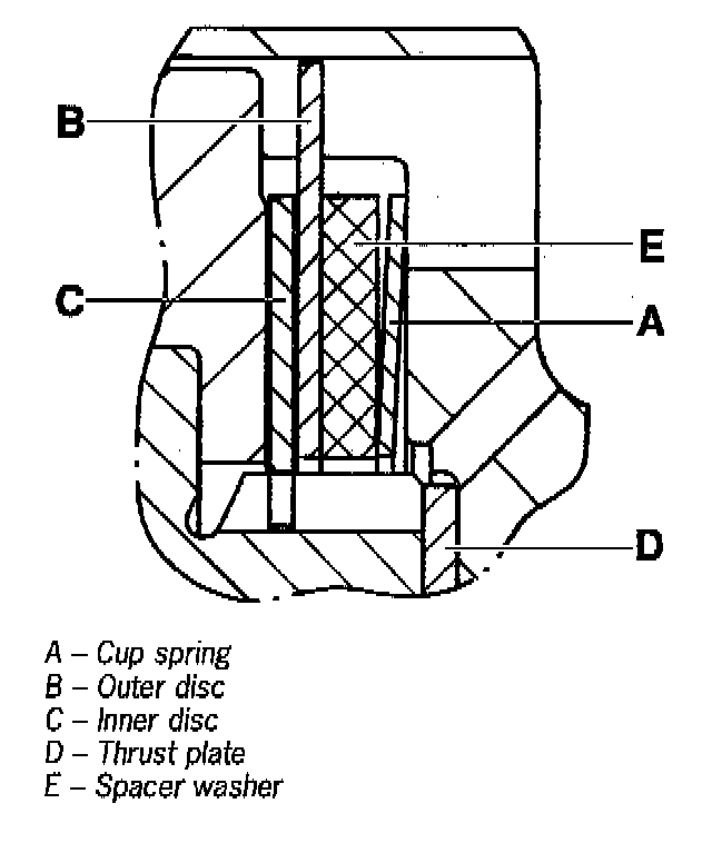2. Install cup springs so that the cambers point inwards to the disc pack.