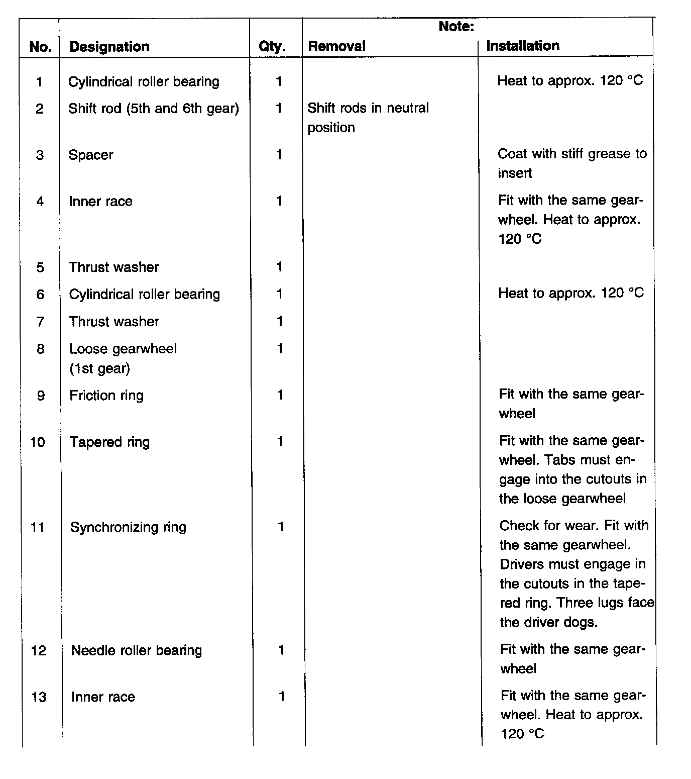 - To do so, place friction ring, tapered ring and synchronizing ring in correct position onto gearwheel.