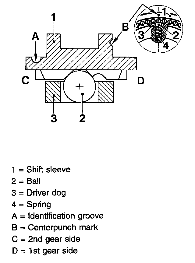 3. Place shift sleeve onto guide sleeve so that centerpunch marks "B" are centered relative to the balls.