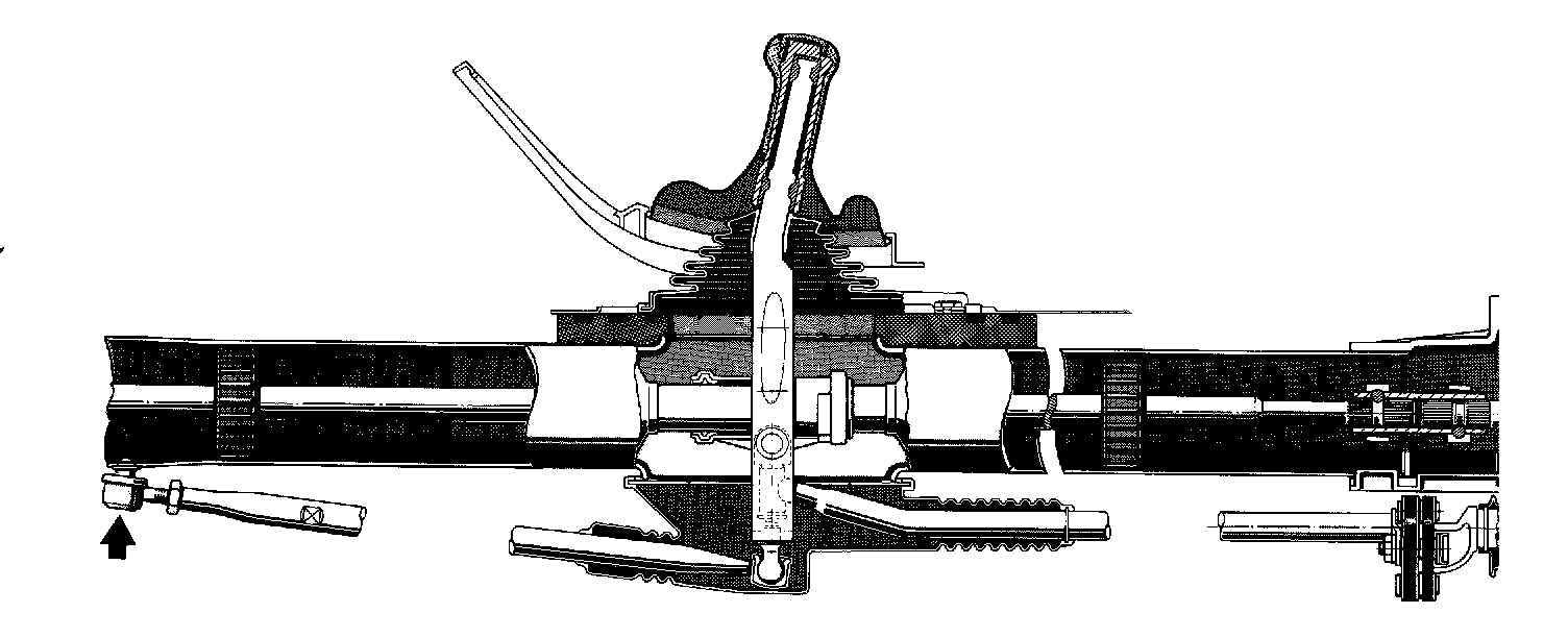 The illustration above shows the four-wheel drive version. On the rear-wheel drive version, the ball of the guide tube (arrow) is installed on a transverse strut attached to the front axle cross member.