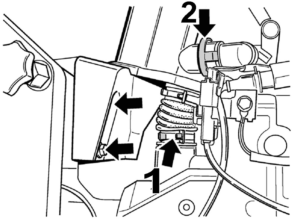2.1. Release and pull off the engine vent line -1- at the oil separator by pressing the locking ring.