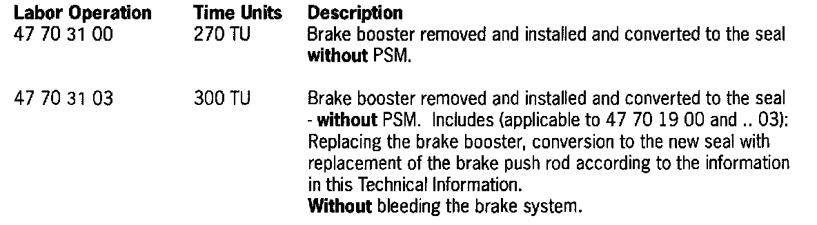 47 70 31 - Supplement 61 "Converting brake booster (bellows)"