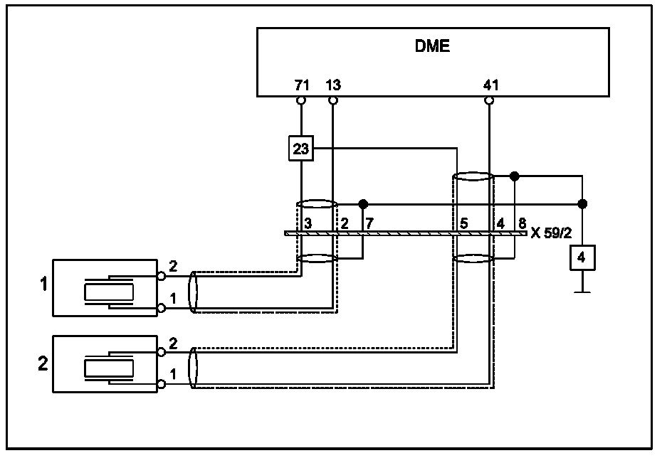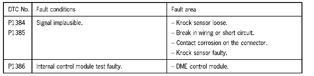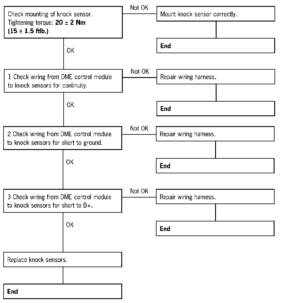 3 Check wiring from DME control module to knock sensors for short to B+.