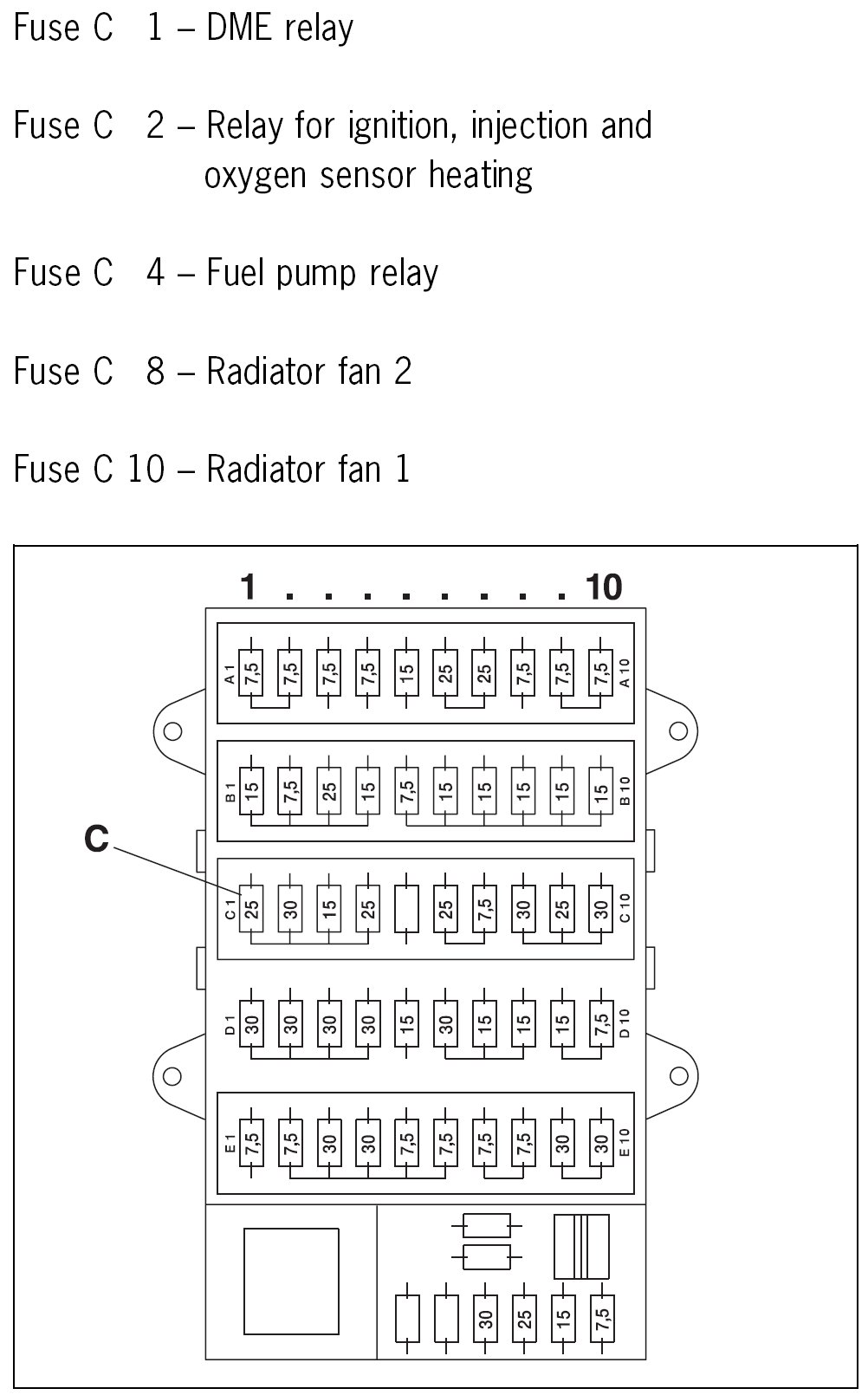 Assignment on fuse carrier (in the footwell)