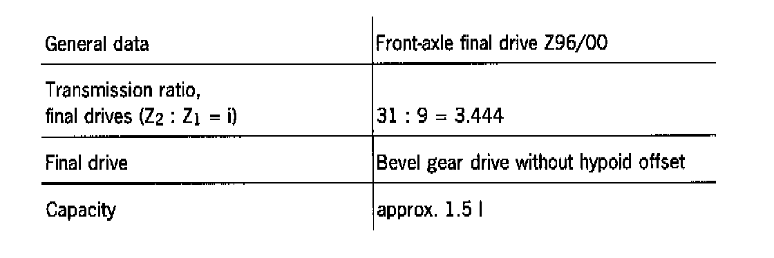 General data, Front-axle final drive Z96/00