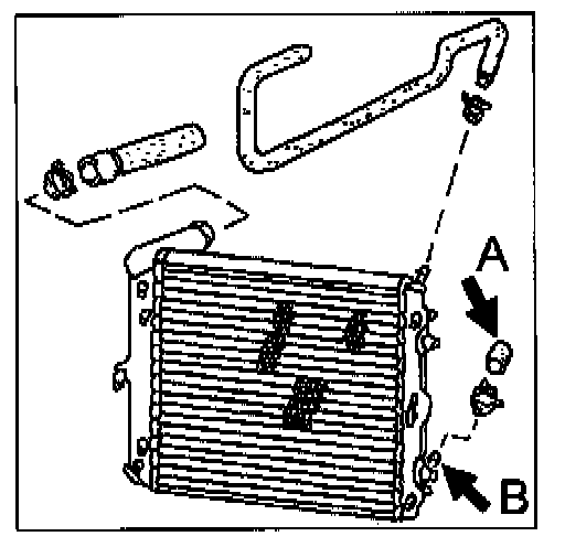 Radiators are now manufactured with only one lower fitting. In the past, this fitting would be capped off depending on which side of the car the radiator was installed on (item B, figure 1). If replacement of a radiator becomes necessary, you must order a radiator that is side specific.