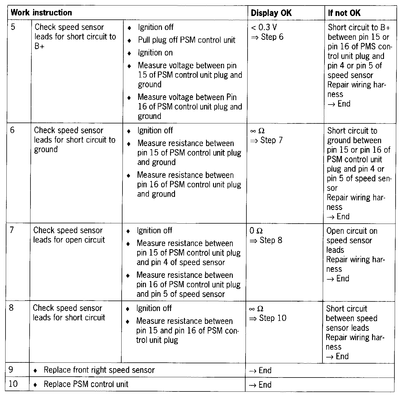 - Short circuit to B+/ground or open circuit between control unit and speed sensor