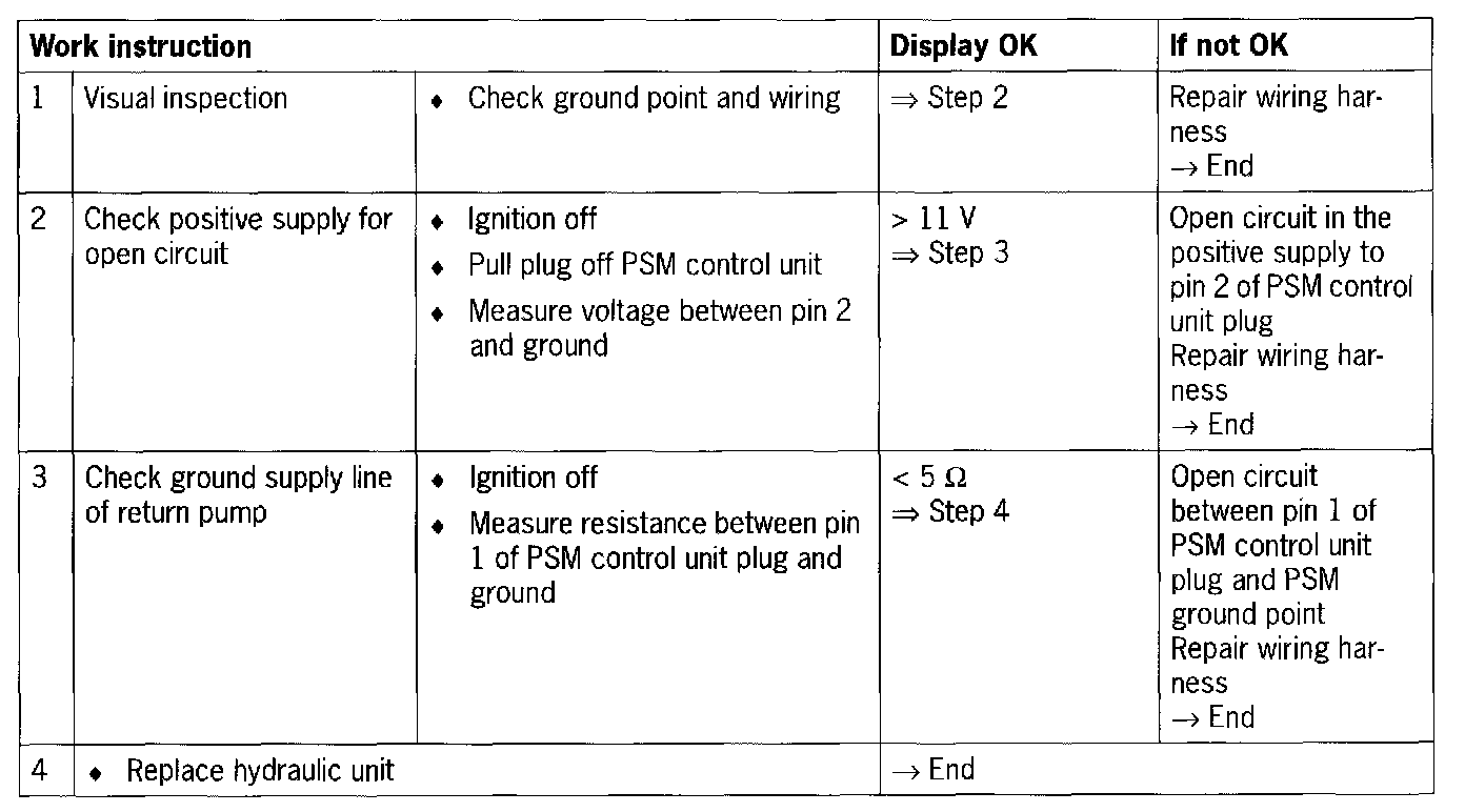 - Short or open circuit in the B+/ground supply to hydraulic unit