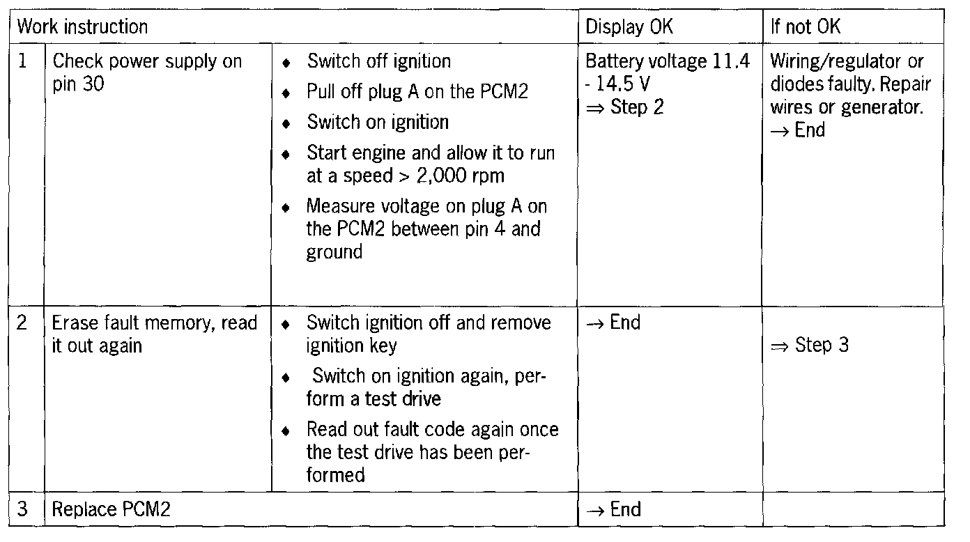 - Battery voltage too high '> 16 V for > 30 sec'