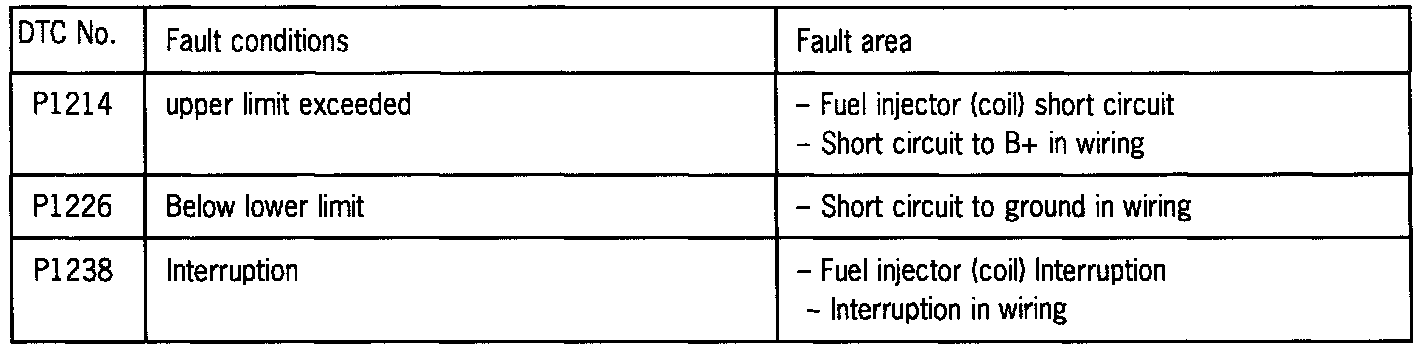 A fault is recognized and stored in memory when the engine speed is above 80 rpm and the battery voltage is between 7.5 Volt and 17 Volt.