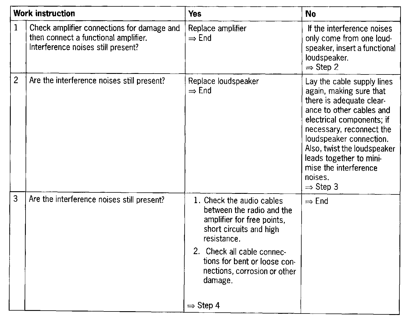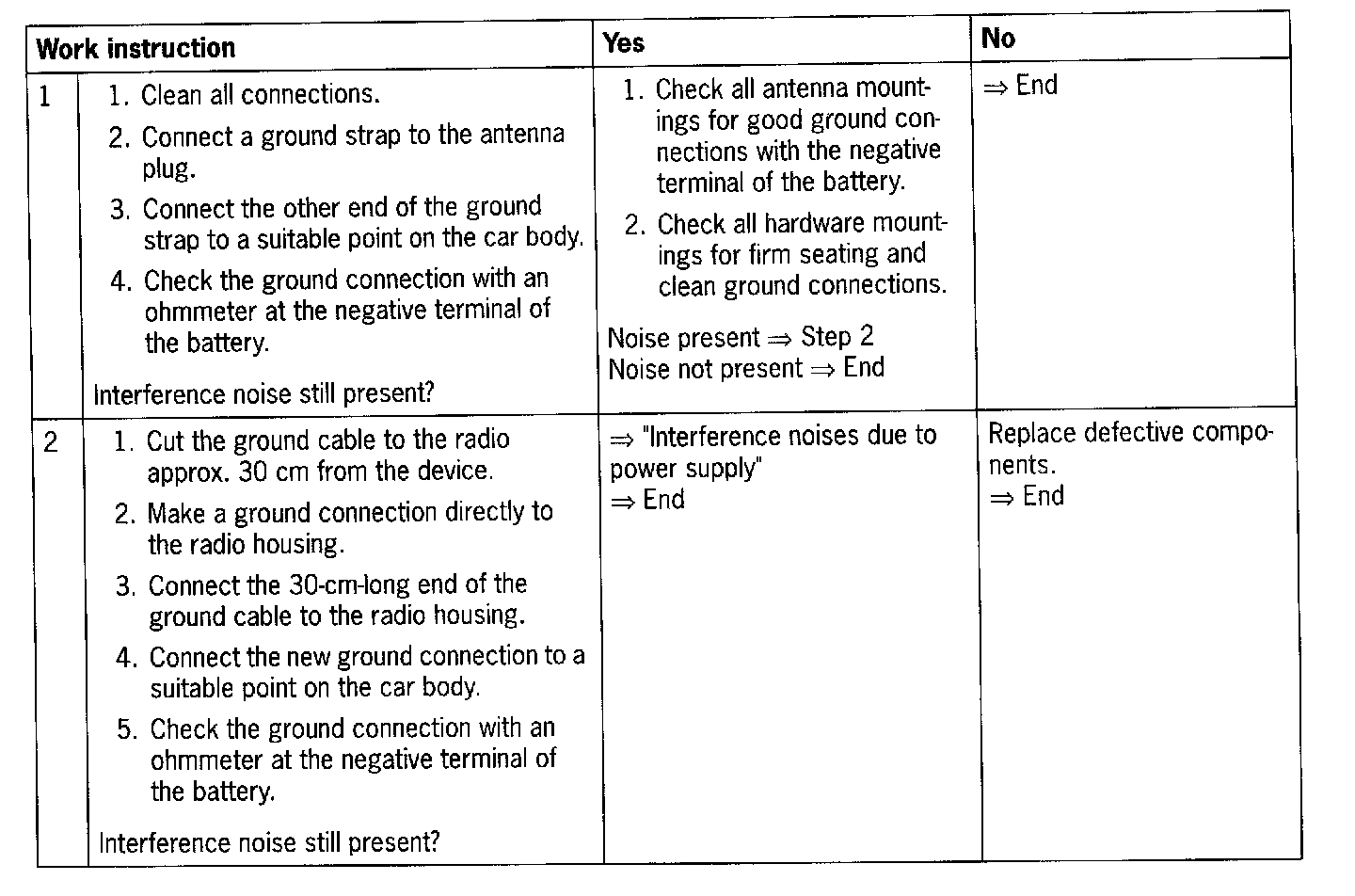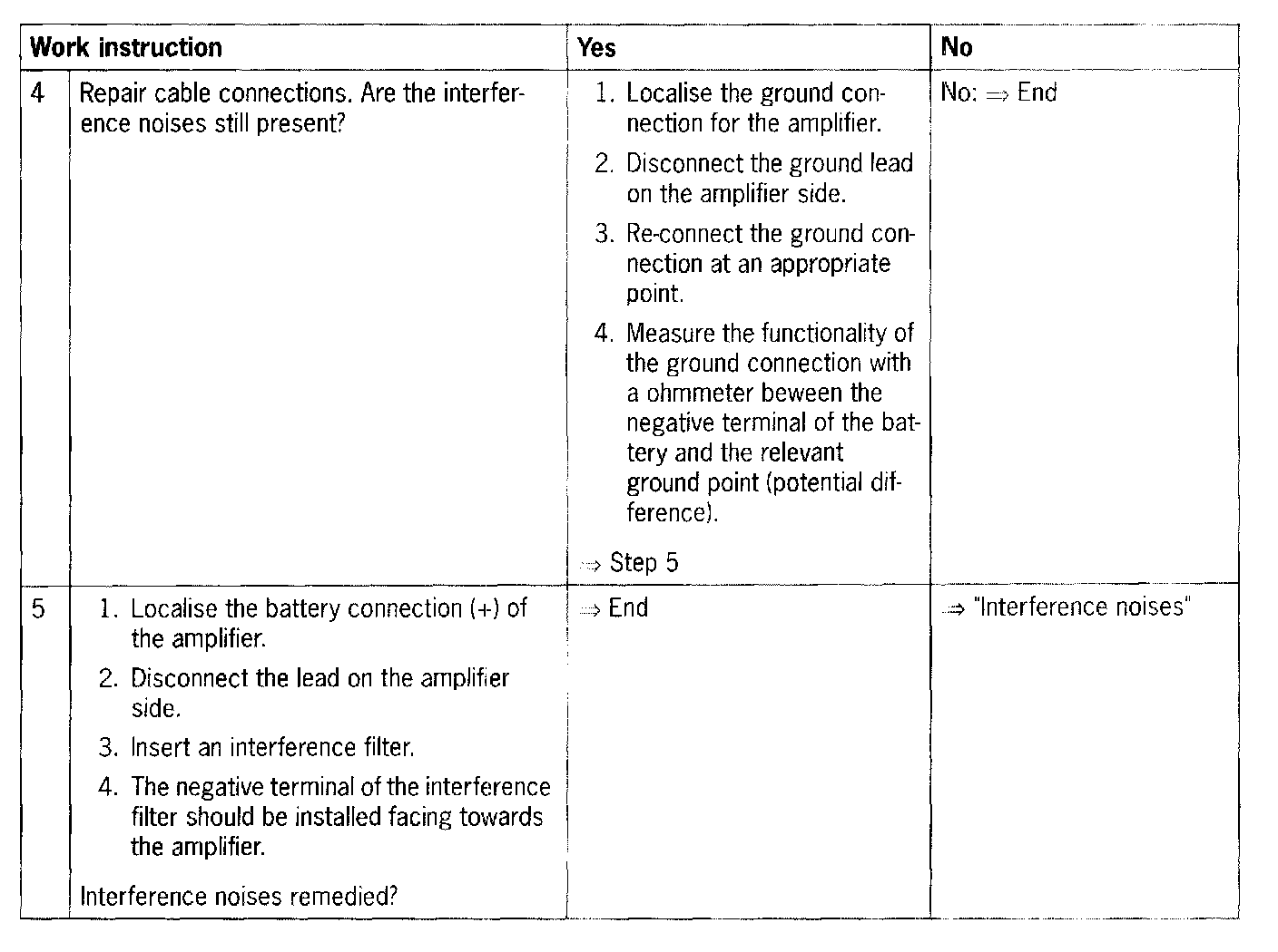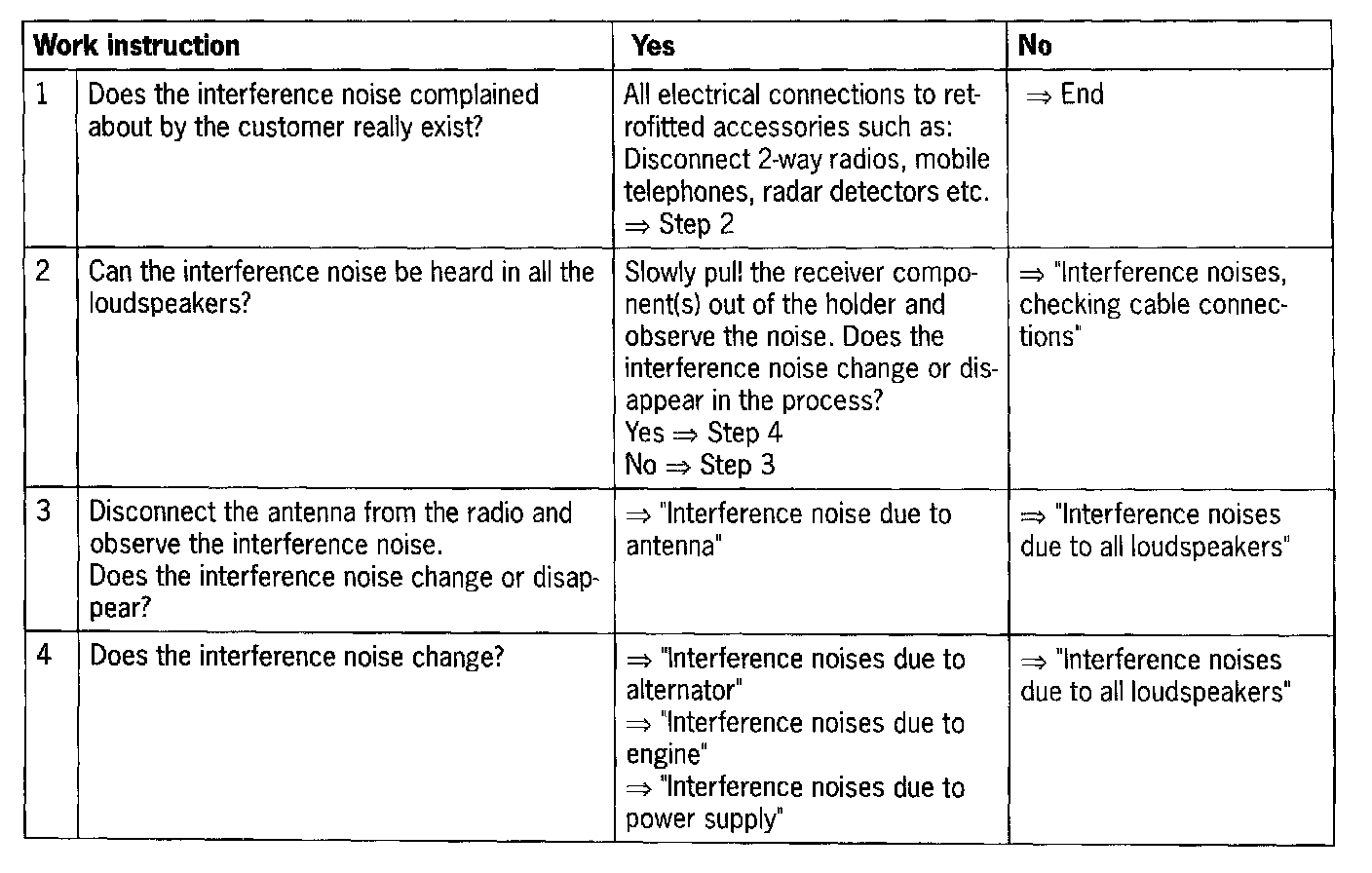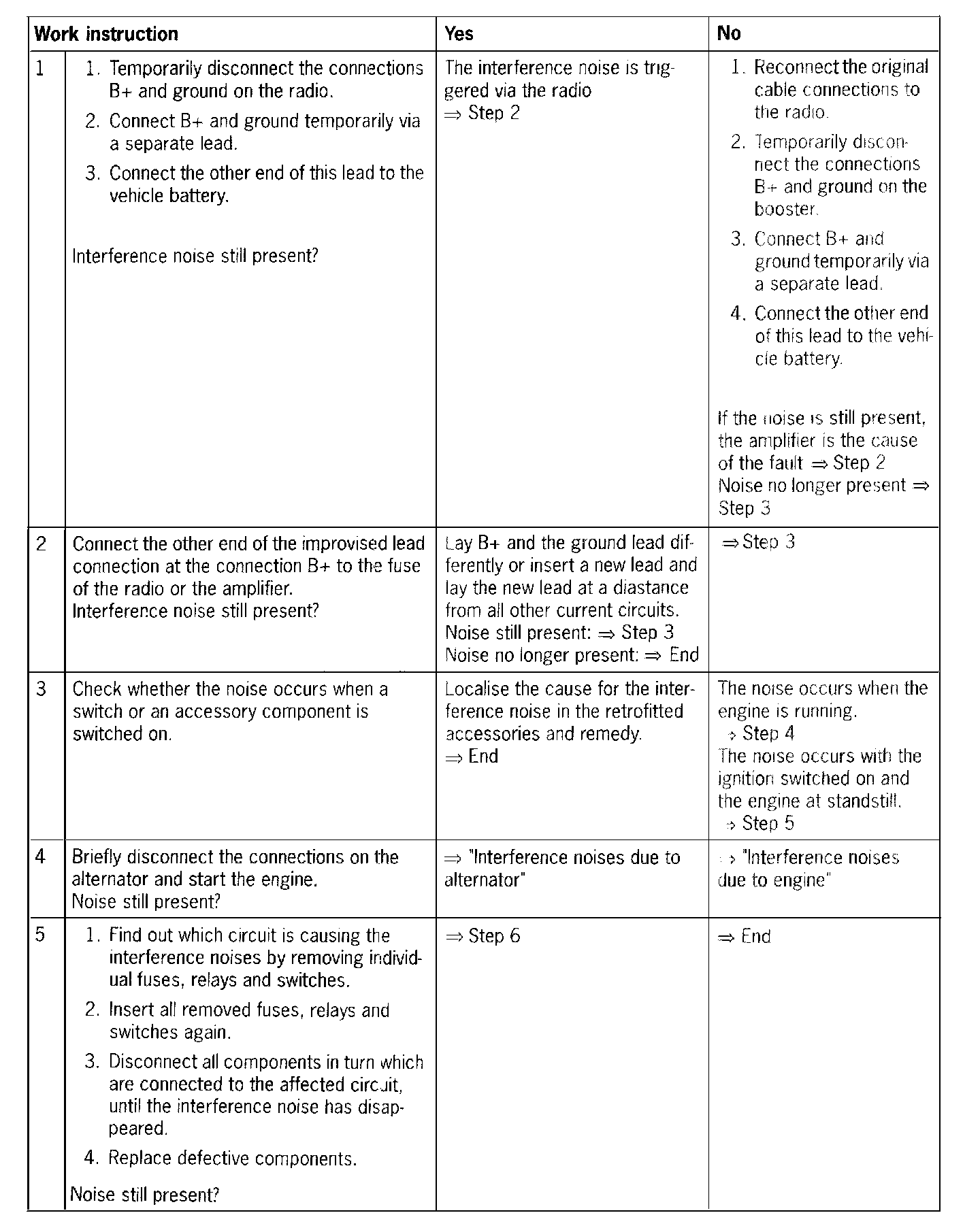 NOTE: Procedure for interference noises which enter the system via the audio connections.