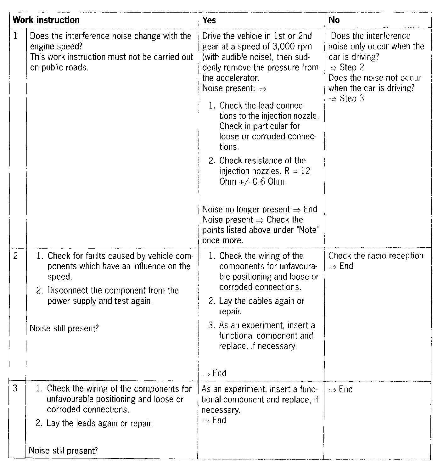 NOTE: Use this test routine for interference noises which originate from the vehicle electrics.