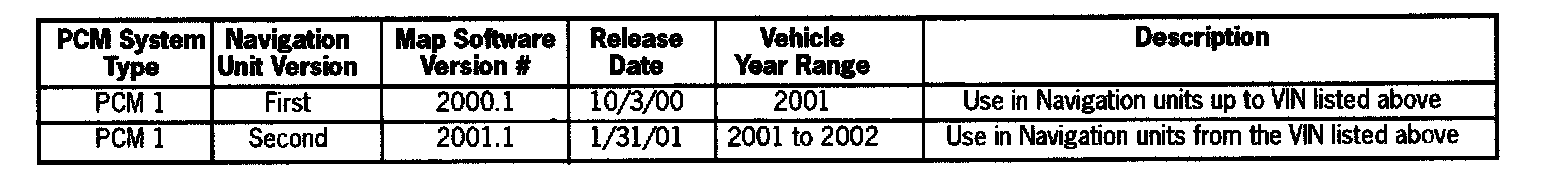 ^ If the Navigation unit is replaced in an early MY2001 vehicle, you must use map software version 2001.1.